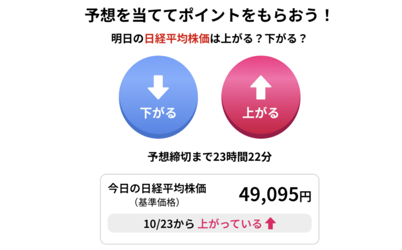 ポイ活好きな人 「日経平均が上がるが下がるか予想してポイントがもらえるポイ活サイトがあるってホント??どんなサービスかおしえて」