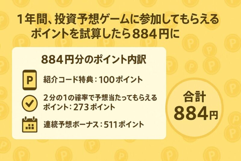 - 実際にやってみた感想と1年間、予想ゲームに参加したらもらえるポイントの試算結果