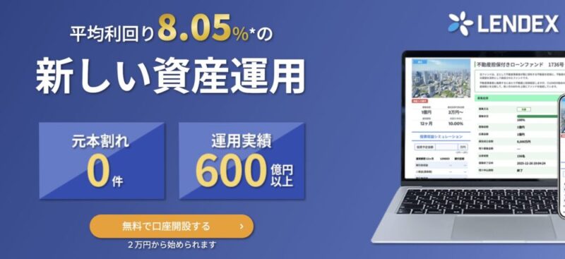LENDEXは平均利回り8%の高いリターンで資産運用できるサービス