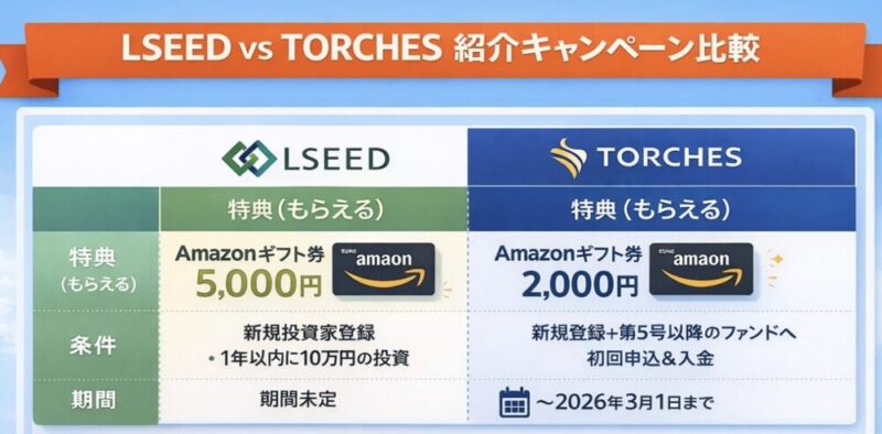 LSEED紹介キャンペーンとトーチーズの投資応援キャンペーンを比べてみた!!