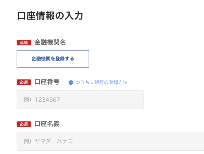 登録ステップ②:情報入力【銀行口座情報も必要】