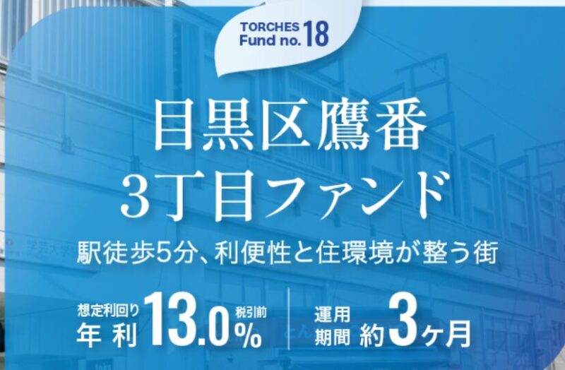 【2/13~2/17まで】トーチーズでは年利13%、運用期間3ヶ月の18号ファンドの投資申込み期間。