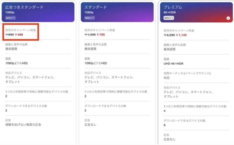 - ネットフリックス日本版、広告付きプランを1ヶ月利用(498円)