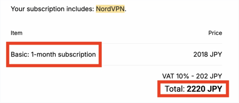 実際に私がひと足早く、2月20日にNord VPNを1ヶ月契約してかかった費用は2220円でした。