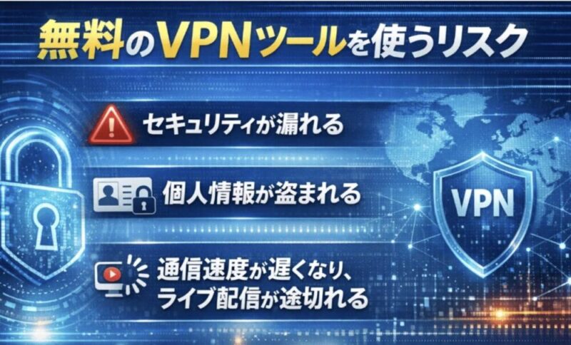 ネット上には無料で使えるVPNサービスもあるっちゃあります。ただその場合、