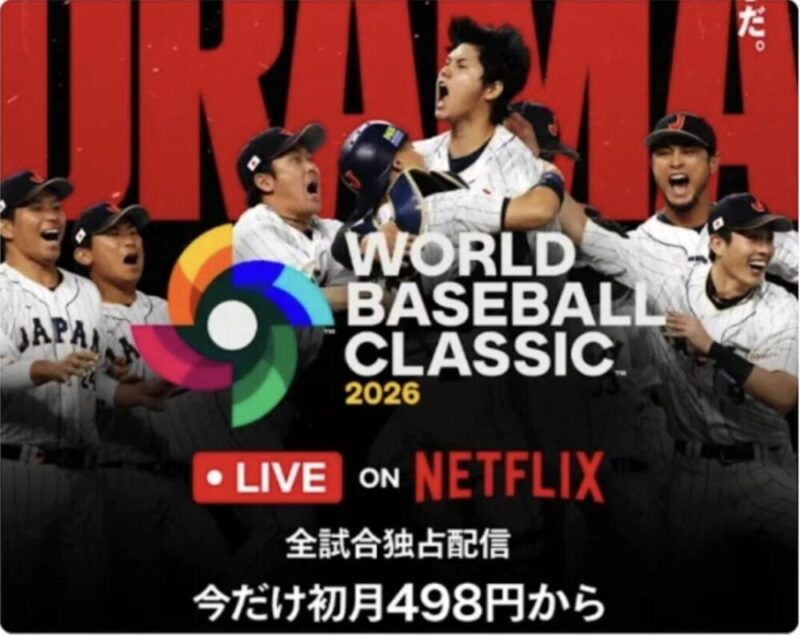 なお、ネットフリックス日本版はWBC2026、侍ジャパンの試合のライブ中継に加えて、2023年のWBCのダイジェスト映像や村上選手のドキュメンタリーなど関連コンテンツも多数みれます!!
