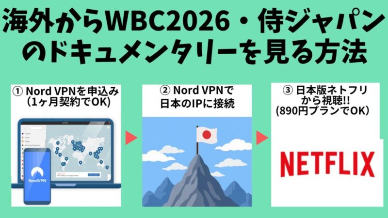2026年3月に開催されたWBC(ワールドベースボールクラシック)での侍ジャパンの舞台裏に迫ったドキュメンタリーを海外から見る手順は以下3ステップ