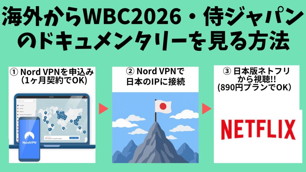 「NordVPN」を活用すると日本版NetflixにアクセスできるのでWBCのドキュメンタリーが視聴できます!!